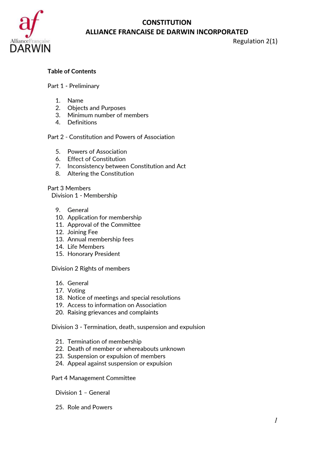As a not for profit organisation, our Constitution is made available online and can be found here in PDF form.